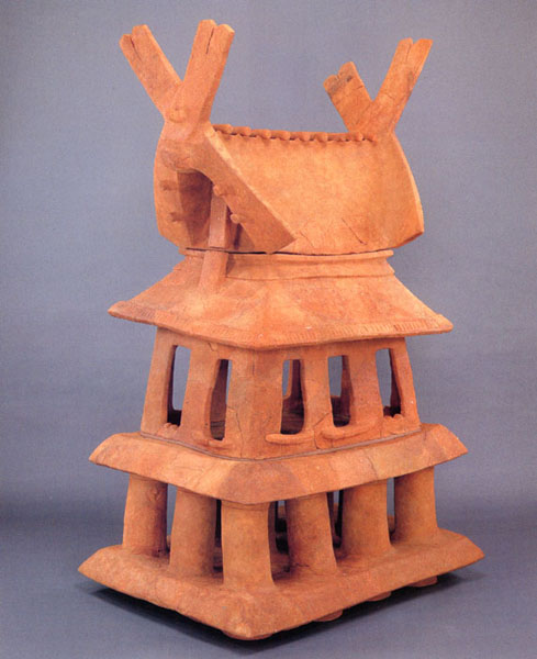 千木〔ちぎ〕を飾る高床の家 復元高170.0cm