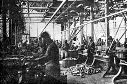第一次大戦期、労働者数は700人を超えました。板ガラスをカットしている職工の横顔には、まだ少年の面影が残っています。